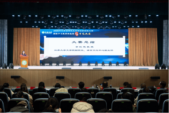 在闭幕式上,各个比赛赛场与环节的评委代表对选手表现进行了点评,并举行了颁奖仪式。江苏大学文学院副院长、语言文化中心副主任余红艳教授对本次大赛作了总结。她认为,本次大赛选手在教学技能与才艺大赛中表现出来的高度自由性、创造性和多样性,充分展示了中外研究生的国际中文教育专业风采和学术素养,令大家印象深刻。她希望各高校进一步加强交流合作,为讲好中国故事、传播好中国声音助力,为中外人文交流和构筑人类命运共同体贡献力量。