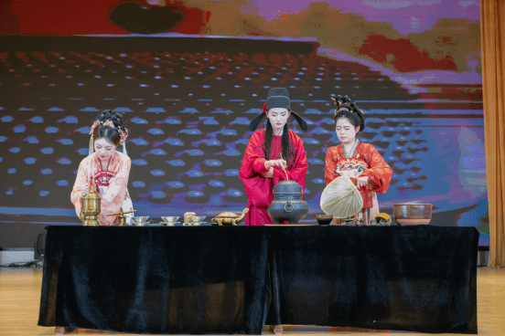下午,中华才艺大赛与教学技能决赛同时分别进行。江苏大学来自尼日利亚的TRICIA OREOLUWA RAHMAN(崔西娅)用一首歌曲《弯弯的月亮》为中华才艺大赛暖场助兴。16个中外研究生参赛团队同台竞技,表演样式种类繁多,除了传统的歌曲、舞蹈、相声、书法、茶艺、乐器等形式外,更多的是综合多种艺术样式的参赛作品。舞台上,高潮迭起,精彩纷呈,充分展示了国际中文教育学子多才多艺的惊艳实力和中华文化的独特魅力。最终,扬州大学的歌舞情景剧《跨越岁月的声影相和》凭着匠心编排、精湛演绎征服了专业评审与现场观众,拔得头筹,荣获中华才艺大赛特等奖。我校综合类节目《瓷韵·流光》荣获一等奖。