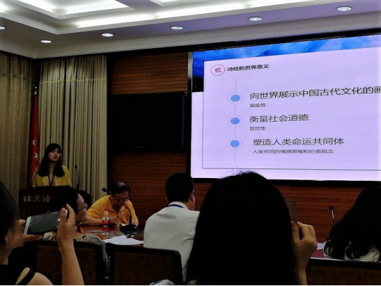 2018年5月19日至20日,中国先秦史学会国学双语研究会成立大会暨“首届全国国学双语高端论坛”在北京召开。我校文学院院长、语言文化中心主任任晓霏教授应邀带队参加会议。任晓霏教授在大会上受聘为国学双语研究会常务理事并担任会议分论坛点评嘉宾。文学院研究生廖瑾瑜做了题为“《诗经》在欧亚传播与影响对比研究”的精彩主旨发言。她以日本和法国为代表,从现实性、普世性和人类命运共同体等方面,系统深入地分析和对比了《诗经》在亚洲和欧洲的传播影响与启示。