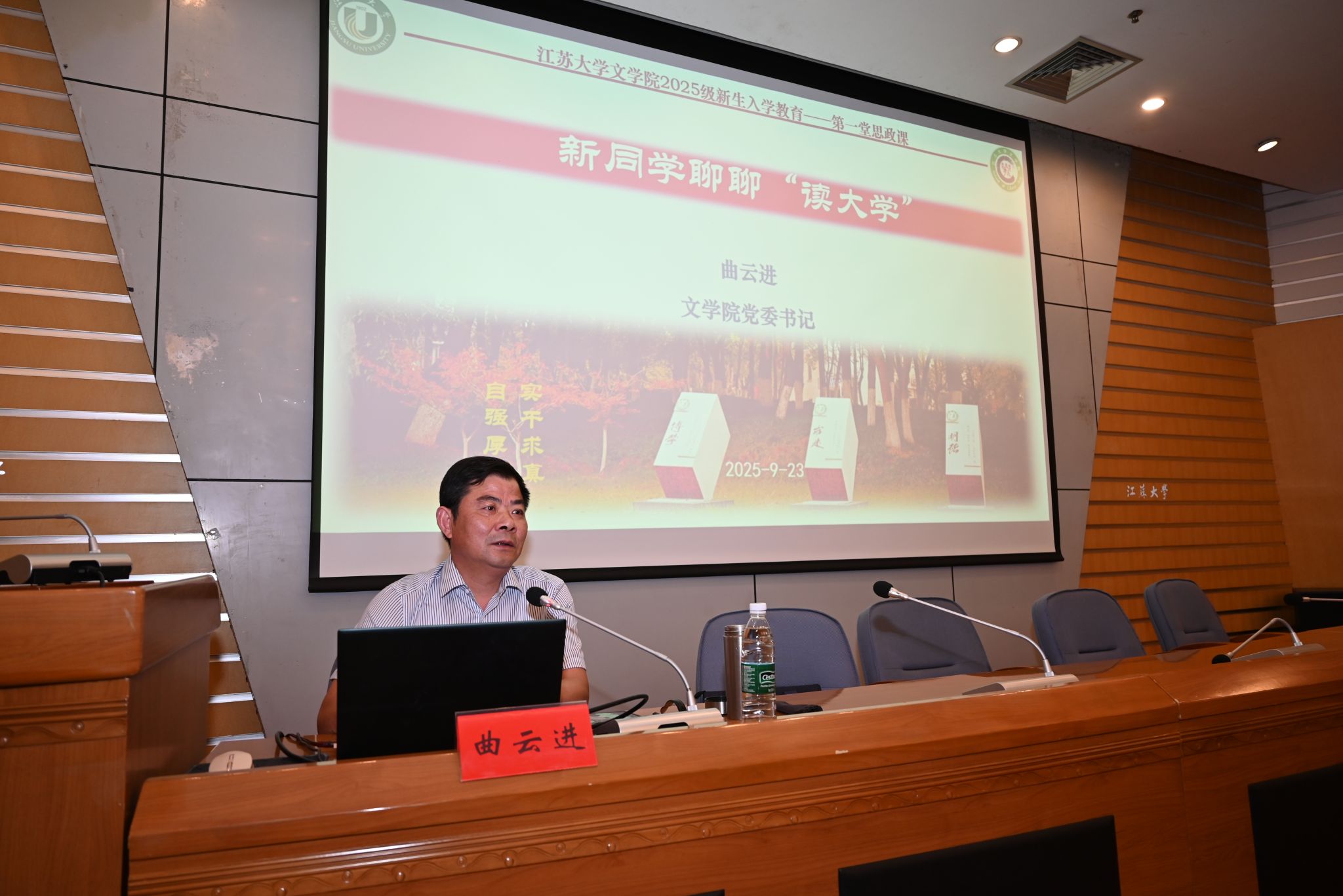 9月23日,2025级文学院新生入学教育第一课在会议中心第一报告厅顺利进行。本次活动邀请了江苏大学文学院党委书记曲云进主讲,2025级全体新生参加。