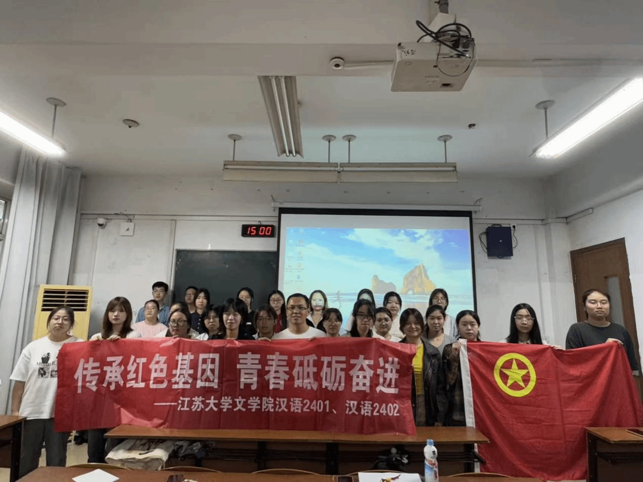 9月24日下午,江苏大学文学院汉语2401团支部与汉语2402团支部在三山楼108合作举办了“传承红色基因,青春砥砺奋进”主题团日活动。本次活动聚焦青年大学生的成长实践与毕业方向,邀请公维军老师与“嗣音”支教团队分享经验,给青年团员搭建了一个交流思想、共同成长的平台。
