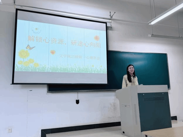 10月30日,文学院在计算机楼109教室顺利开展2025级研一“解锁心资源,研途心向阳”主题心理班会。本次活动由班级心理委员陈晨策划组织,2025级研一全体同学参与,旨在帮助新生缓解研究生阶段常见的心理困扰,掌握心理调适方法,筑牢心理健康防线。