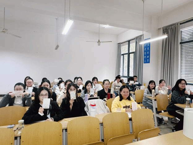 随后的互动环节“解忧杂货铺”点燃现场氛围。陈晨为每位同学准备空白明信片,大家匿名写下近期小困惑与对未来自己的小期待,投入互助盲盒后随机抽取他人卡片。同学们结合自身经历写下暖心建议,待大家领回自己的明信片,读着陌生同学的鼓励,现场满是温暖。此外,陈晨还组织心理影音分享,通过治愈短片搭配情绪调节小贴士,让同学们感受到研途有情绪波动很正常,学会疏解最重要。