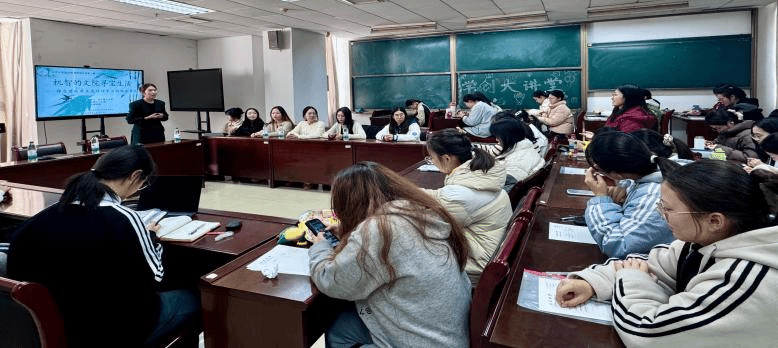在温暖的氛围中,黄雪云以“我的人生四十年:从个体探索到共同体构建”为题,展开了一场真诚的分享。黄雪云没有罗列学术成果,而是以“反向选择”为线索,复盘了自己充满转折的人生路径:从放弃小学教师编制、外企高管职位,到背井离乡赴韩留学,再到回国深耕国际中文教育。她坦言,科研的种子,往往萌芽于那些看似不务正业的好奇与闲聊。从她的讲述中,同学们渐渐了解到江小语工作室的核心,就是营造一个安全、包容、鼓励试错的“非正式”环境,让师生成为彼此学术探索路上真正的同行者。黄雪云运营公众号、带领学生从课堂疑问发展出研究项目的案例,让“非正式科研”变得可知可感。