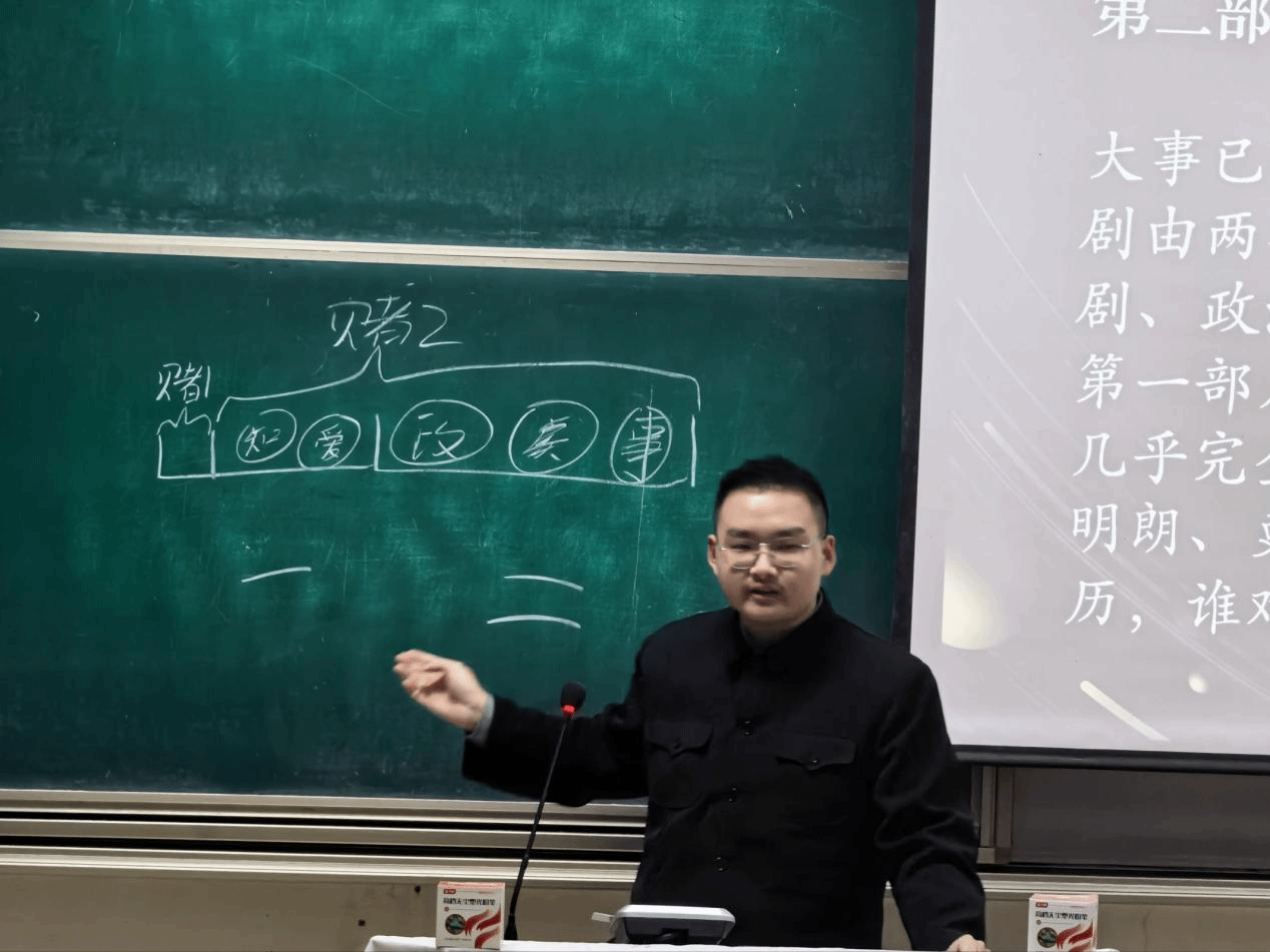 在核心内容解析环节,周程成围绕“两场赌赛”与“五场悲剧”展开阐释。在天上序幕中,天帝与靡菲斯特的赌赛奠定了人性善恶的基调,而浮士德与魔鬼的契约则是贯穿故事的核心线索。接着,他分析了浮士德五个阶段的探索历程:知识悲剧促使他走出书斋;爱情悲剧让他放下个人私情;政治悲剧使他追寻古典之美;美的悲剧让他放弃偏安一隅的想法;事业悲剧中,他坚守信念,最终获得灵魂的救赎。讲解过程中穿插了原文诵读,让同学们真切感受诗剧的独特魅力。