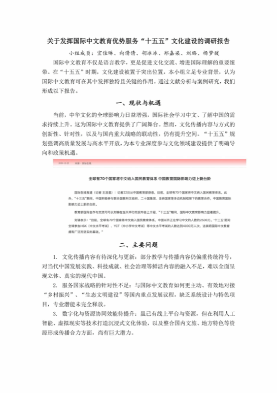 优秀学长的基层工作经验给支部青年带来了很大的触动,青年们也深入开展了“我为‘十五五’献一策”活动。大家结合各自专业特长,分别围绕文化建设、乡村振兴、教育发展、生态保护等“十五五”规划重点领域,分小组开展调研实践。通过文献研读、实地走访、问卷调查等多种形式,支部青年们运用专业知识分析现状、发现问题并提出创新性建议,最终形成了多份图文并茂的调研报告。