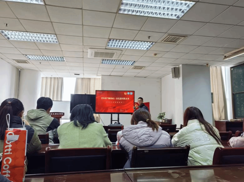 12月10日下午,文学院主办的“青年担当映初心 公民意识筑未来”十二月团员座谈会于三江楼901B顺利举行。本次座谈会由马研会部长陈嘉祺主讲,马研会全体成员积极参与。