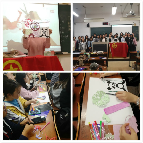 In order to better promote and inherit the excellent traditional Chinese culture represented by paper-cut, let the majority of students enjoy the charm and unique style of paper-cut. The college of literature and literature of jiangsu university held a paper-cutting activity with the theme of "paper cutting with music, red leaves and frost flowers" at room 113 of sanshan building at 6:30 p.m. on October 25, 2019.At the beginning of the activity, the host first introduced our traditional solar term culture and the theme of frost's fall by a poem, put forward a solar term song for the 24 solar terms of China, and launched a question and answer session to answer poems and riddles, everyone actively raised their hands to answer. Then the students group paper cutting, students watching the video, eager to try, picked up the scissors on the paper cutting creation. After the paper-cut finished, the host of the paper-cut works of each group for display and evaluation, in each of the distinctive paper-cut works selected the first, second and third prize. The whole activity was carried out in an orderly way, with active interaction between the host and students.The paper-cutting activity ended in a warm atmosphere. This activity not only made students learn to cooperate, but also enhanced the cohesion and innovation ability of the department. And strengthen the students understanding of Chinese traditional throttle culture and values, realized the connotation of its implication in the Chinese traditional culture and history of paper-cutting this practice also let the students feel our intangible cultural heritages, grasp the unique charm of Chinese culture, let the traditional folk art gradually into the campus, eclecticism.
