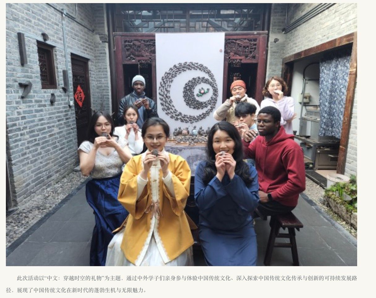 International students from Malaysia, Nigeria, Russia, Zimbabwe and other countries joined hands with Chinese students to launch a themed activity entitled "Dialogue with Millennium-Old Intangible Cultural Heritage, Exploring the Beauty of Civilization". They visited the Taiping Clay Whistle Experience Hall in Xijindu, Zhenjiang City, Jiangsu Province, to enjoy an immersive experience of the unique charm of this provincial-level intangible cultural heritage item. After gaining a deep understanding of its production techniques and cultural connotations, the students designed a global promotion slogan for it—"A Whistle Blown for a Thousand Years, Peace Prevails Forever", symbolizing its historical inheritance and vitality in the new era. Through close contact and in-depth exploration, Chinese and foreign students not only appreciated the profound heritage of traditional Chinese culture, but also carried out brainstorming sessions to explore the modern value and commercial potential of this millennium-old intangible cultural heritage. This activity injected new vitality into the inheritance and innovation of China’s intangible cultural heritage, demonstrating the boundless charm and broad prospects of traditional Chinese culture.