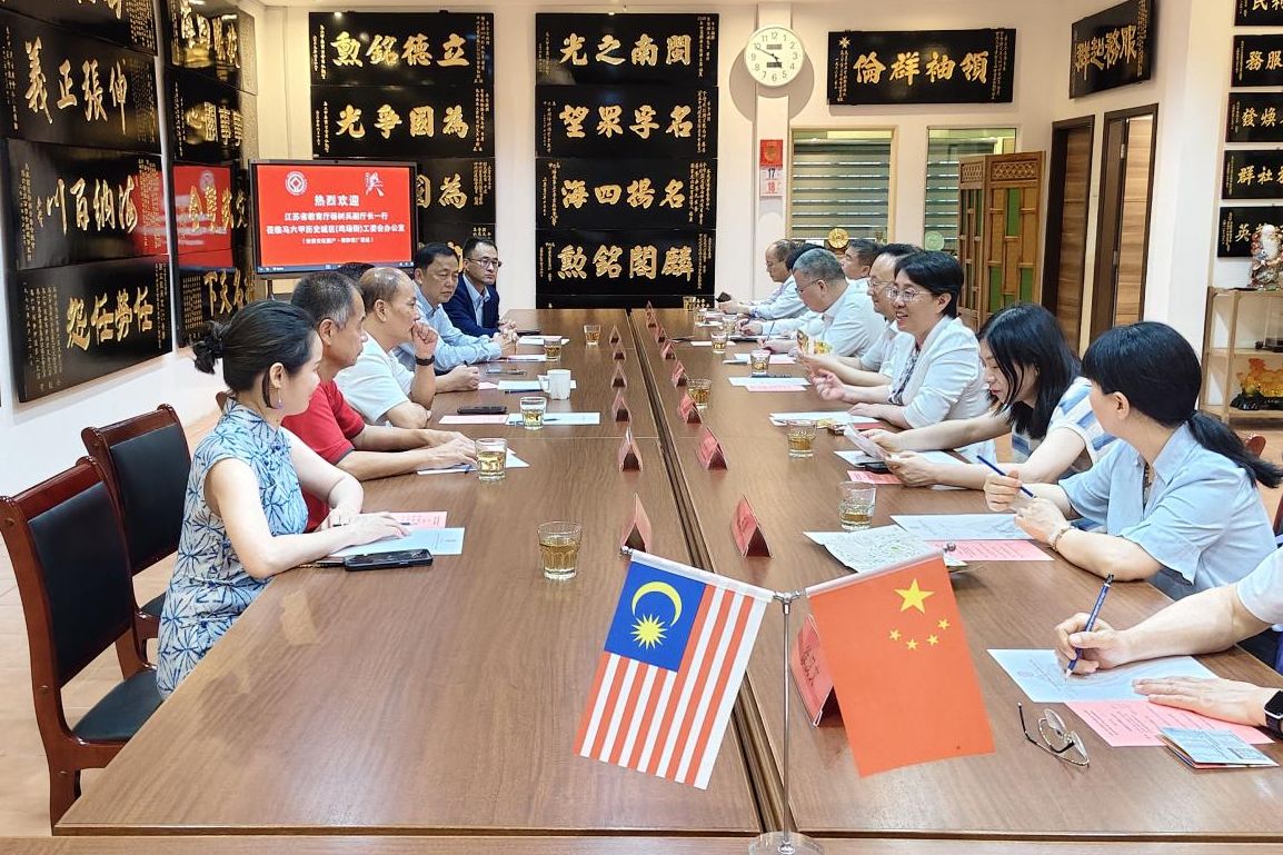 On May 18, the Jiangsu Education Delegation held a meeting on the source of international students at the Chinese National High School in Malacca, Malaysia. At the meeting, the delegation had discussion and exchange with Malaysian alumni once studying in Jiangsu Province and the local high school principals, and listened to their opinions and suggestions on the education of foreign students in Jiangsu Province. President Xing Weihong introduced the JSU's international education cooperation, overseas Chinese language education, and the situation of Malaysian students studying in China. Principal of Peifeng Middle School in Malaysia Huang Shelley, a partner of JSU, participated in the exchange.